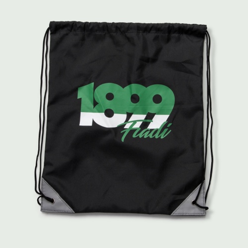 Fekete tornazsák zöld-fehér 1899 Fradi felirattal. Méret: 35 cm x 40 cm