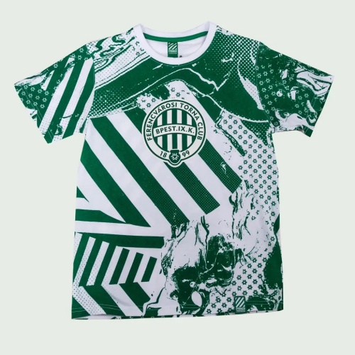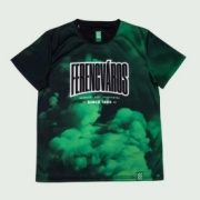 Zöld-fehér grafikai mintás női póló, középen FTC címerrel. Anyaga: 100% pamut