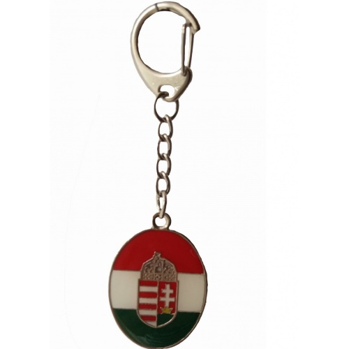 Ovális címeres piros-fehér-zöld kulcstartó.