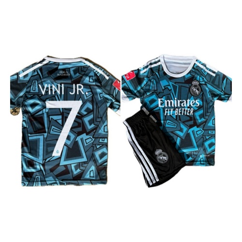 Real Madrid szurkolói mezgarnitúra gyerek Vini JR 7 2024 türkiz